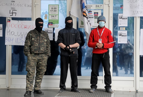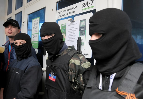 В ходе нападения на отделение Приватбанка, под угрозой применения оружия, боевики выгнали из отделения клиентов и потребовали от сотрудников открыть дверь кассового узла.